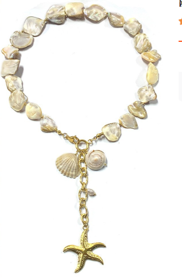 À l'avant, un charm en étoile de mer en or ajoute une touche de glamour et souligne l'inspiration marine de ce bijou.